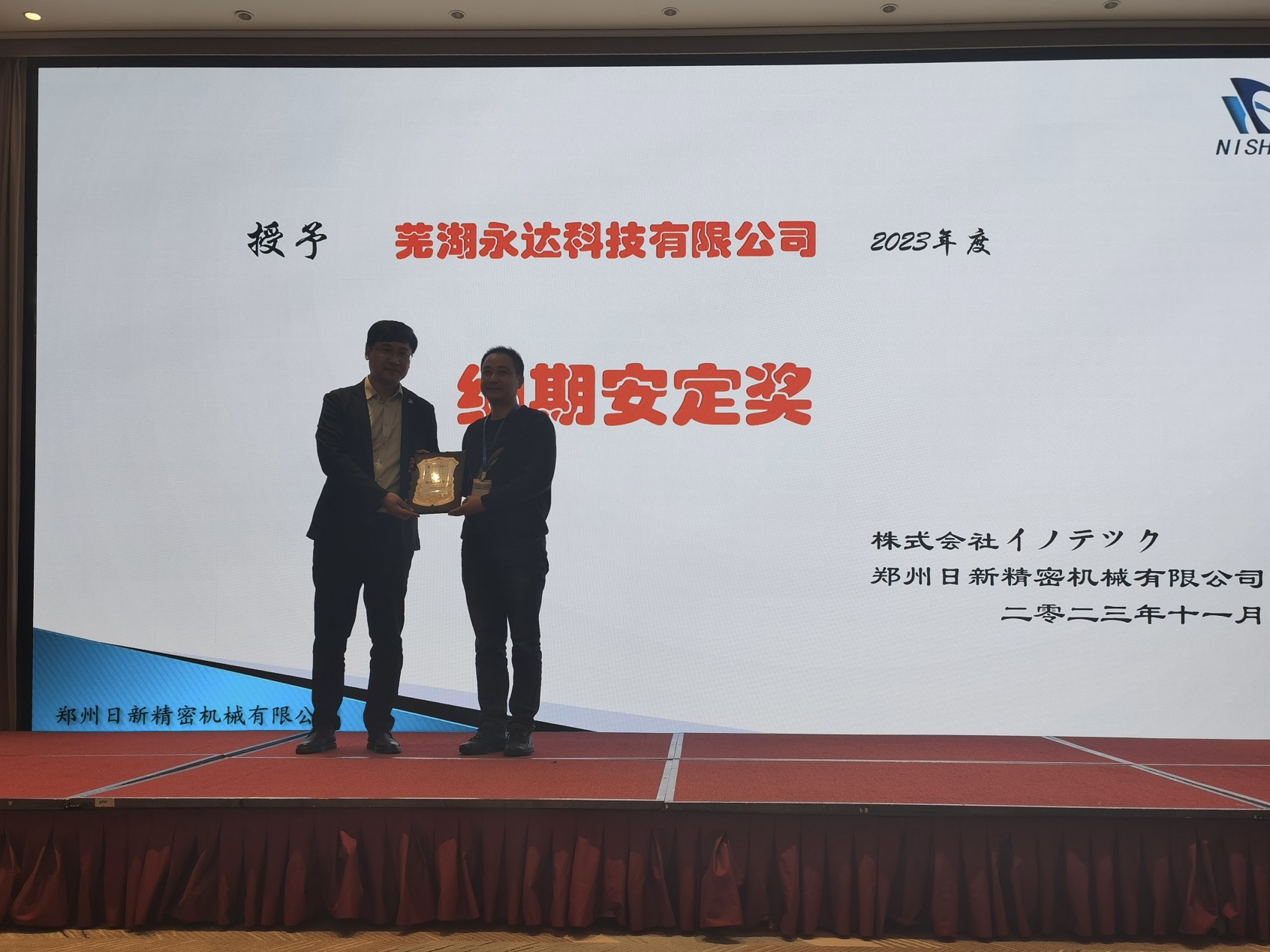 2023年11月17日下午3點(diǎn),“2023年合作企業(yè)年會(huì)”在中州假日酒店正式開(kāi)始。本次年會(huì)共邀請(qǐng)合作企業(yè)30家,共計(jì)55人參加。其中設(shè)立了4個(gè)合作企業(yè)獎(jiǎng)項(xiàng),分別是:優(yōu)秀供應(yīng)商獎(jiǎng),協(xié)力貢獻(xiàn)獎(jiǎng),納期安定獎(jiǎng)和品質(zhì)向上獎(jiǎng)。最后由山東裕隆金和精密機(jī)械有限公司和河南廣瑞汽車(chē)部件股份有限公司獲得了年度“優(yōu)秀供應(yīng)商”獎(jiǎng)項(xiàng)。
